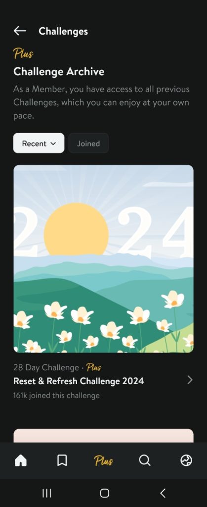 Except this features, It provided various resources for the beginner. On the home tap, it have sleep, breathe, new courses, workplace, morning etc menu.
